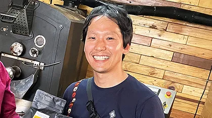 学部時代にカンボジアの小学校を訪問したことをきっかけに、国際協力に関心を持つようになりました。旅行会社での勤務を経てJICA海外協力隊に応募しましたが、コロナ禍により派遣が延期。その間に独学でプログラミングを学び、その面白さに惹かれ、国際協力とICTを本格的に結びつけて研究したいという思いが強まりました。実際の派遣ではルワンダの農業協同組合に配属され、コーヒー豆の販路拡大や農業ツーリズムの推進に携わりました。その経験から「ICTを活用すれば現場の課題を解決できるのではないか」と実感し、帰国後にKICへの進学を決意しました。ICTの専門知識だけでなく、課題解決の計画立案まで実践的に学べる点に大きな魅力を感じたのです。