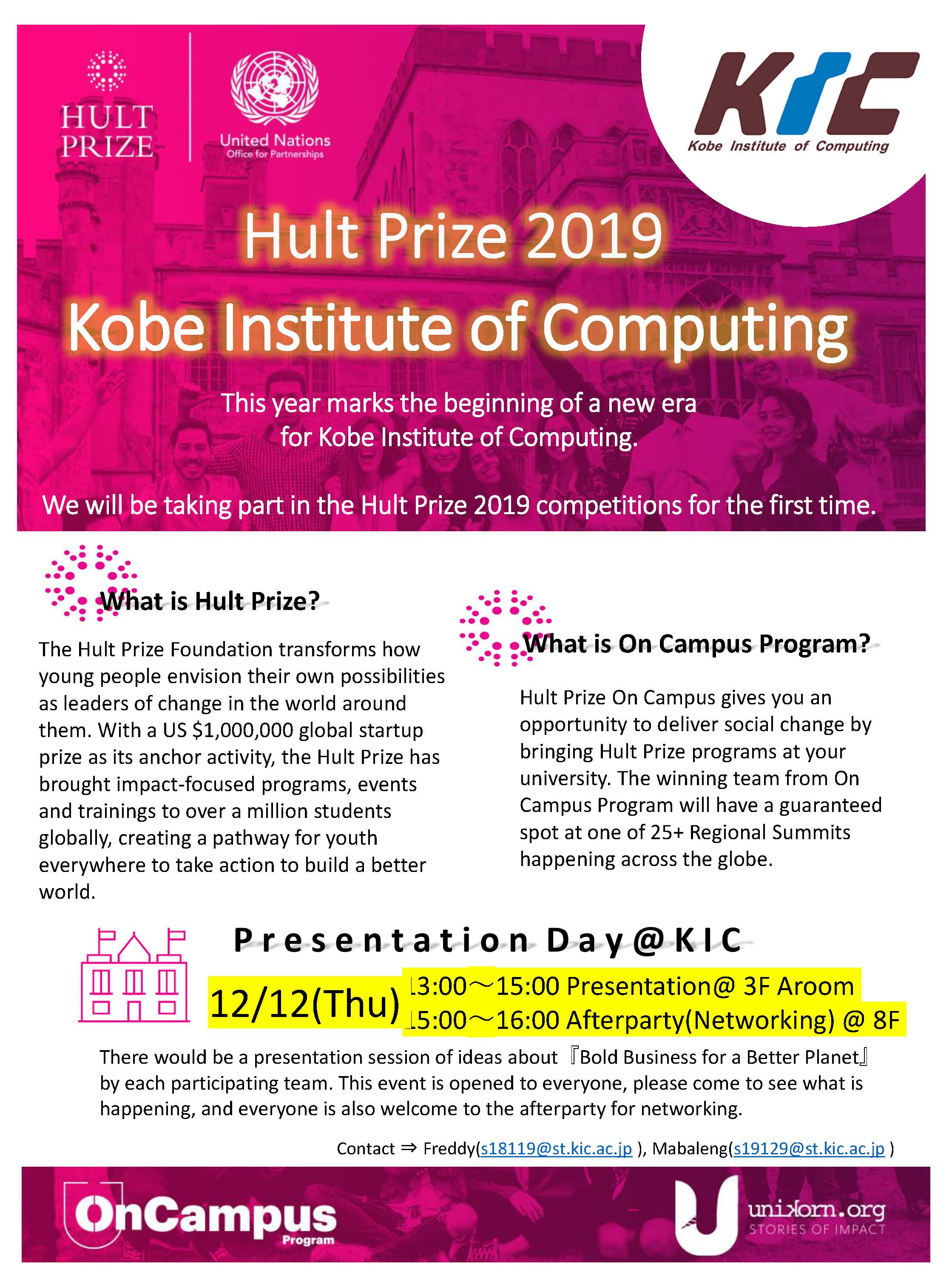 Presentation session of ideas about "Bold Business for a Better Planet" by each “Hult Prize” participating team in KIC