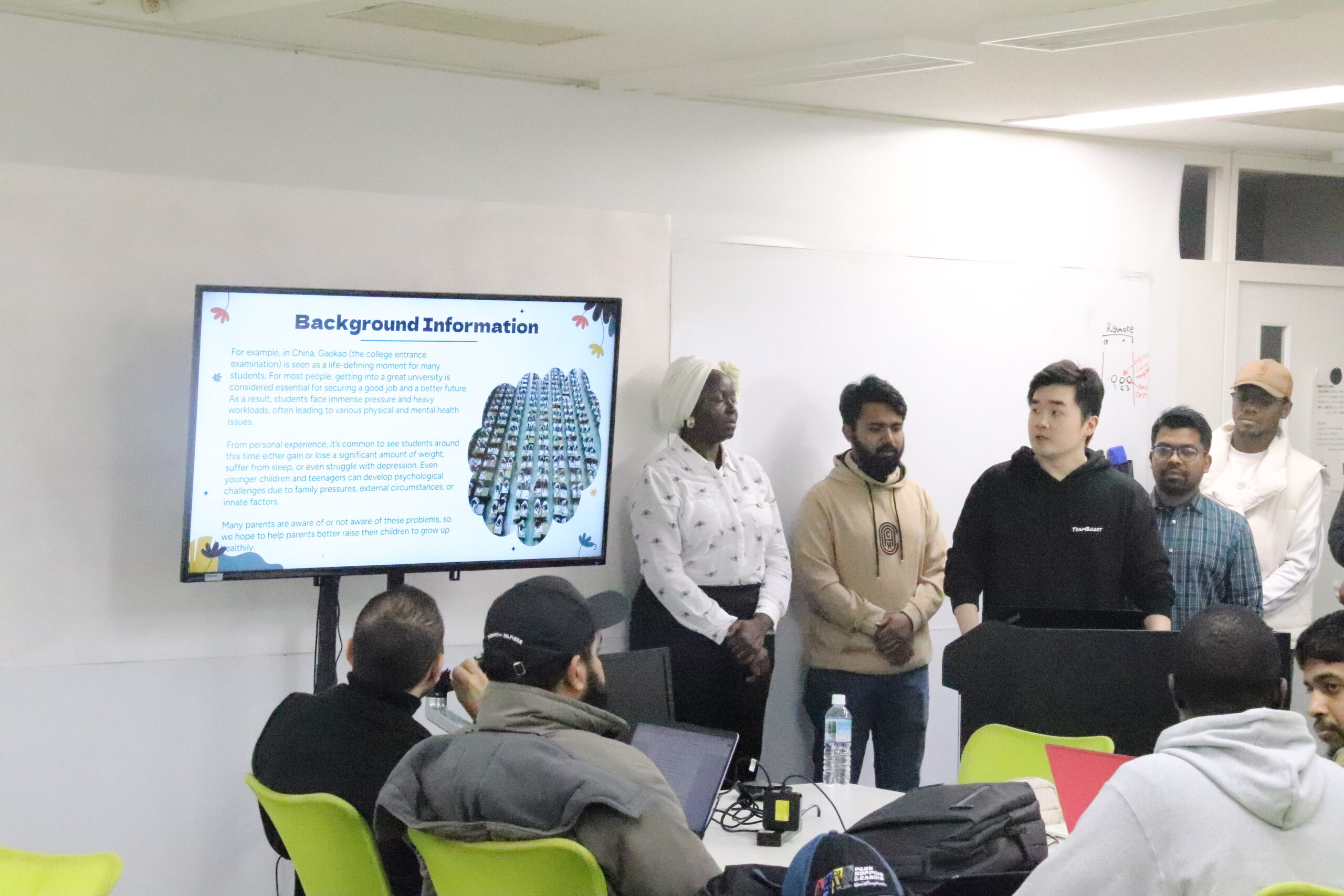 2024年度10月入学のICTイノベータコースの新入生も、リアルとオンライン参加のハイブリッドで、国内外からLIVEで授業が進行され、最終成果発表ではグループ毎に一つの課題設定に対し、ユニークな発想で、下記のような多様な分野のテーマで発表が行われました。