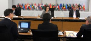 ◆左から、人間開発部の宮城兼輔企画役、鈴木規子理事、JICA関西の大西靖典所長